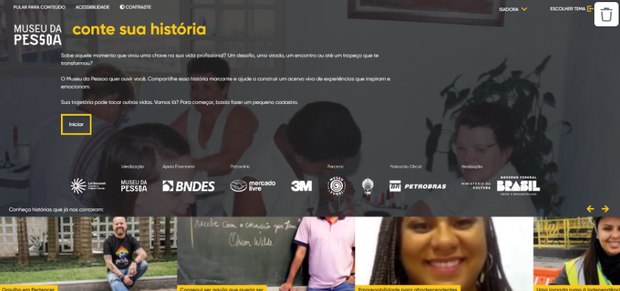As pessoas são direcionadas para ela após escolherem o seu tema entre o cardápio de opções. Nela, será possível iniciar o processo de registro de histórias. Caso surja qualquer dúvida, entre em contato conosco!