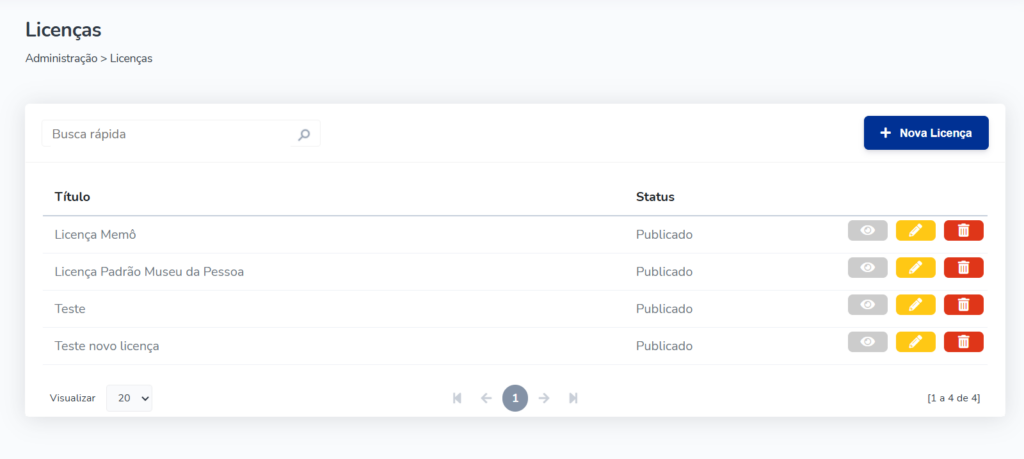 Recurso que facilita aos gestores dos módulos do sistema criar/editar novas opções que estão nos campos de seleção das entidades como Pessoa, Mídia, Histórias, Coleções, etc.